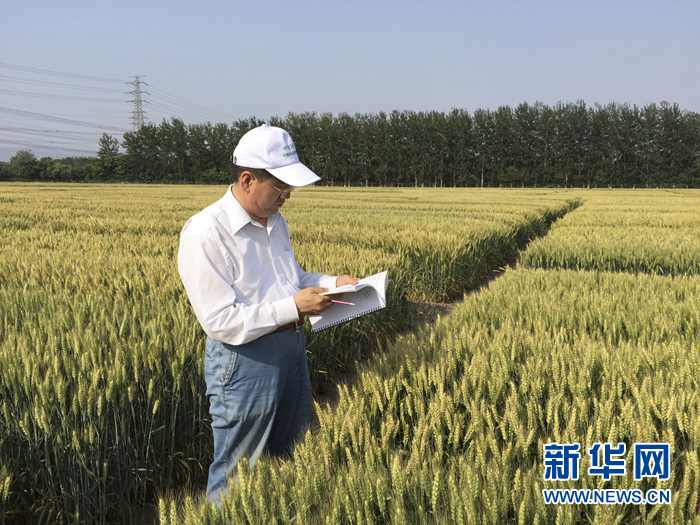 何中虎在中國農(nóng)業(yè)科學(xué)院昌平育種實(shí)驗(yàn)站觀察小麥新品種(資料照片)。新華社發(fā)