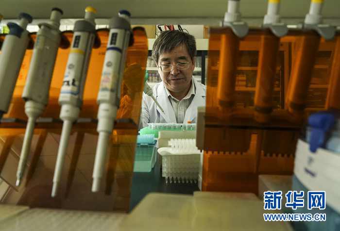 9月20日,何中虎在國家小麥改良中心實(shí)驗(yàn)室做小麥分子標(biāo)記檢測。新華社記者 殷剛 攝