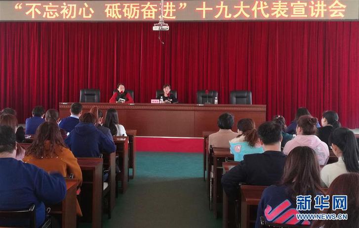 黨的十九大代表、哈爾濱市道里區(qū)撫順街道撫順社區(qū)黨委書記郝麗影(前排右)在撫順街道辦宣講十九大精神(11月1日攝)。新華社發(fā)