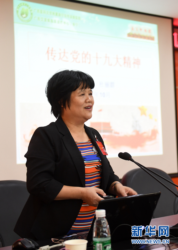 10月30日,在廣西南寧市衛(wèi)計委,杜麗群在宣講黨的十九大精神。新華社記者 陸波岸 攝