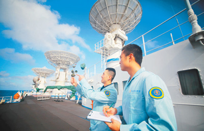 2017年,遠(yuǎn)望號(hào)船隊(duì)圓滿完成了包括天舟一號(hào)在內(nèi)的11次海上測控任務(wù),累計(jì)海上作業(yè)519天,安全航行13.5萬余海里,相當(dāng)于繞地球赤道6圈多。在萬里大洋之上,遠(yuǎn)望號(hào)船隊(duì)用無線電波搭接一條條“天梯”為飛船、衛(wèi)星成功飛天保駕護(hù)航。
