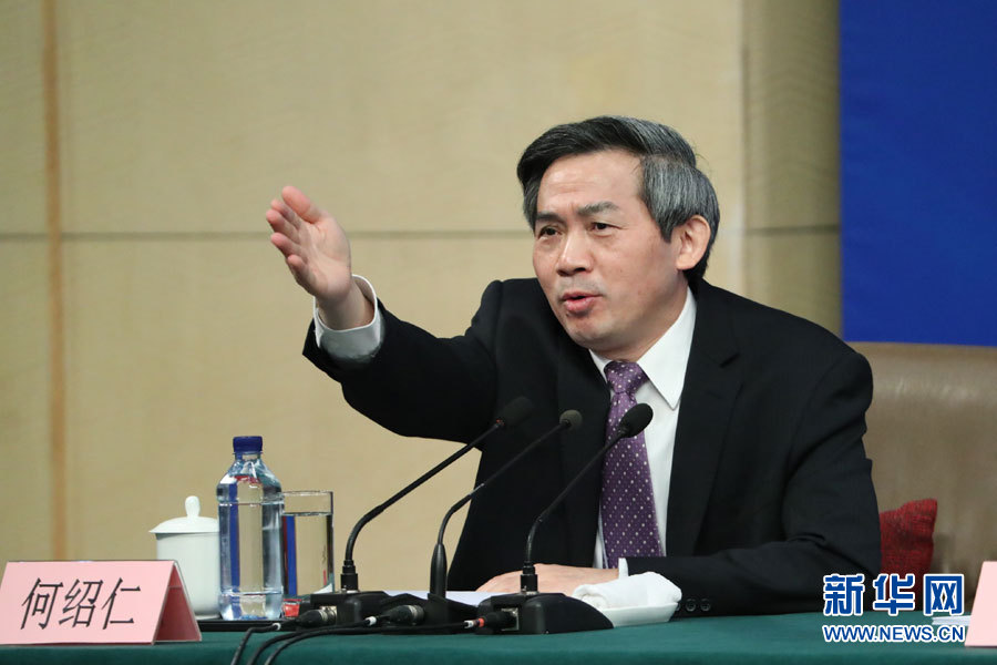 3月10日,十二屆全國(guó)人大五次會(huì)議新聞中心舉行記者會(huì),邀請(qǐng)中國(guó)人民銀行行長(zhǎng)周小川、副行長(zhǎng)易綱、副行長(zhǎng)兼國(guó)家外匯管理局局長(zhǎng)潘功勝、副行長(zhǎng)范一飛就“金融改革與發(fā)展”的相關(guān)問(wèn)題回答中外記者的提問(wèn)。圖為記者會(huì)主持人何紹仁。新華網(wǎng)/中國(guó)政府網(wǎng) 孫韜 攝