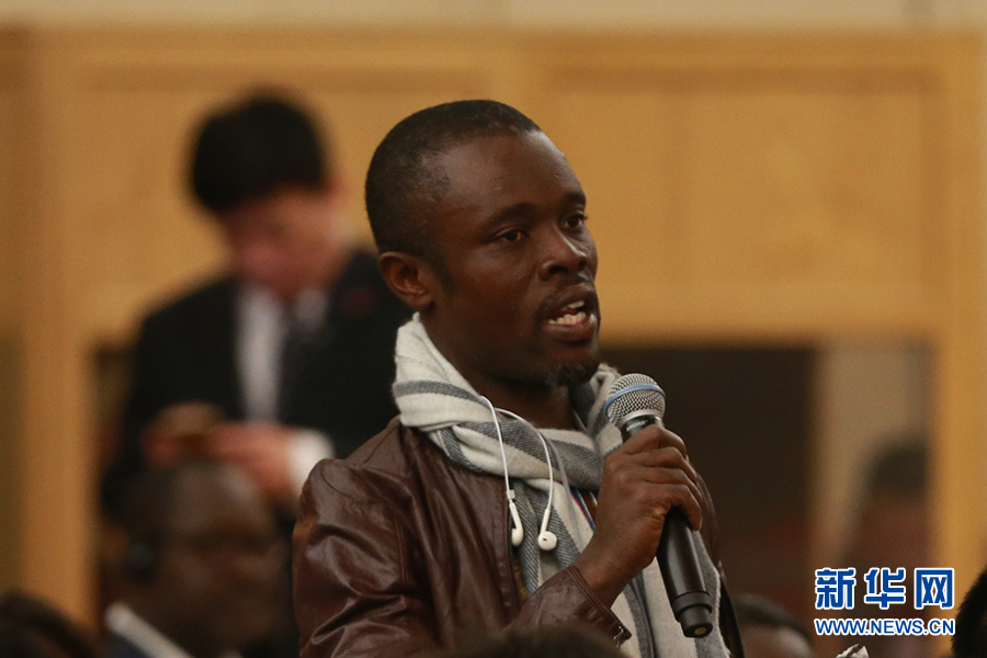 3月11日,十二屆全國人大五次會(huì)議新聞中心舉行記者會(huì),主題是“改革開放調(diào)結(jié)構(gòu) 創(chuàng)新驅(qū)動(dòng)促發(fā)展”,商務(wù)部部長鐘山、副部長王受文、副部長錢克明出席并回答中外記者的提問。圖為利比里亞記者提問。 新華網(wǎng)/中國政府網(wǎng) 傅義洲 攝