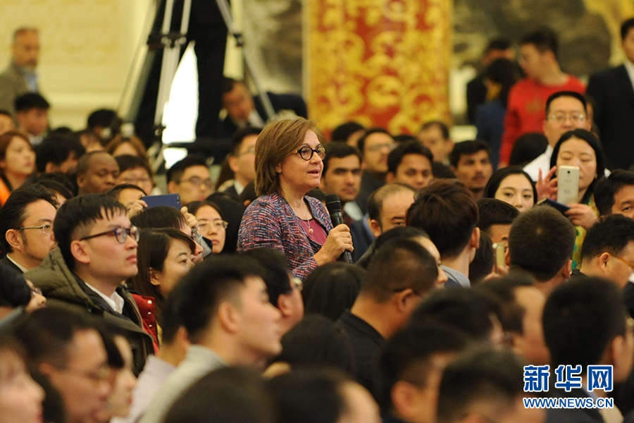 3月15日上午,國(guó)務(wù)院總理李克強(qiáng)在人民大會(huì)堂三樓金色大廳會(huì)見采訪十二屆全國(guó)人大五次會(huì)議的中外記者并回答記者提出的問(wèn)題。圖為法蘭西廣播公司記者提問(wèn)。新華網(wǎng)/中國(guó)政府網(wǎng)?孫韜 攝?
