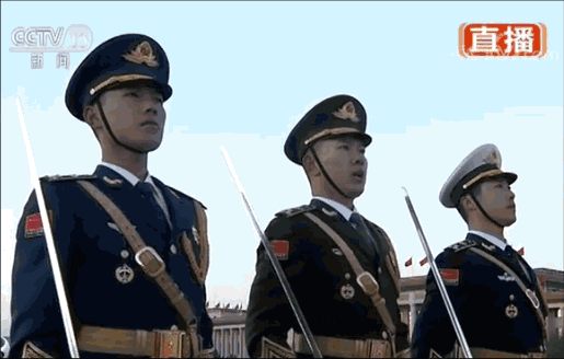 走在國旗手與護旗隊中間的分隊長,此次從一名增加到了三名,他們分別身著陸海空軍禮服,配掛指揮刀,代表解放軍全軍,負(fù)責(zé)發(fā)出升國旗口令。