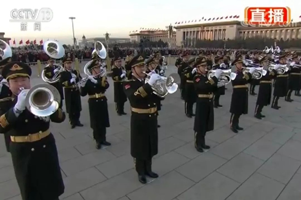 軍樂團奏響《歌唱祖國》的動人旋律 天安門廣場新年升國旗儀式圓滿結(jié)束