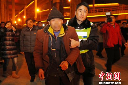 生活無著露宿街頭人員在救助工作人員的幫助下前往救助站避寒?!∫罅⑶?攝