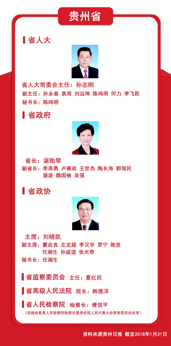 圖文速覽:31省區(qū)市新一屆人大政府政協(xié)領導班子