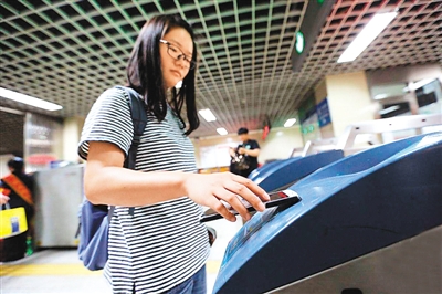 隨著中國在移動互聯(lián)網(wǎng)領(lǐng)域的技術(shù)進(jìn)步與應(yīng)用普及,基于手機(jī)的支付方式正在走進(jìn)生活的每個角落。圖為一位北京市民通過刷手機(jī)直接進(jìn)站乘坐地鐵。 (網(wǎng)絡(luò)圖片)
