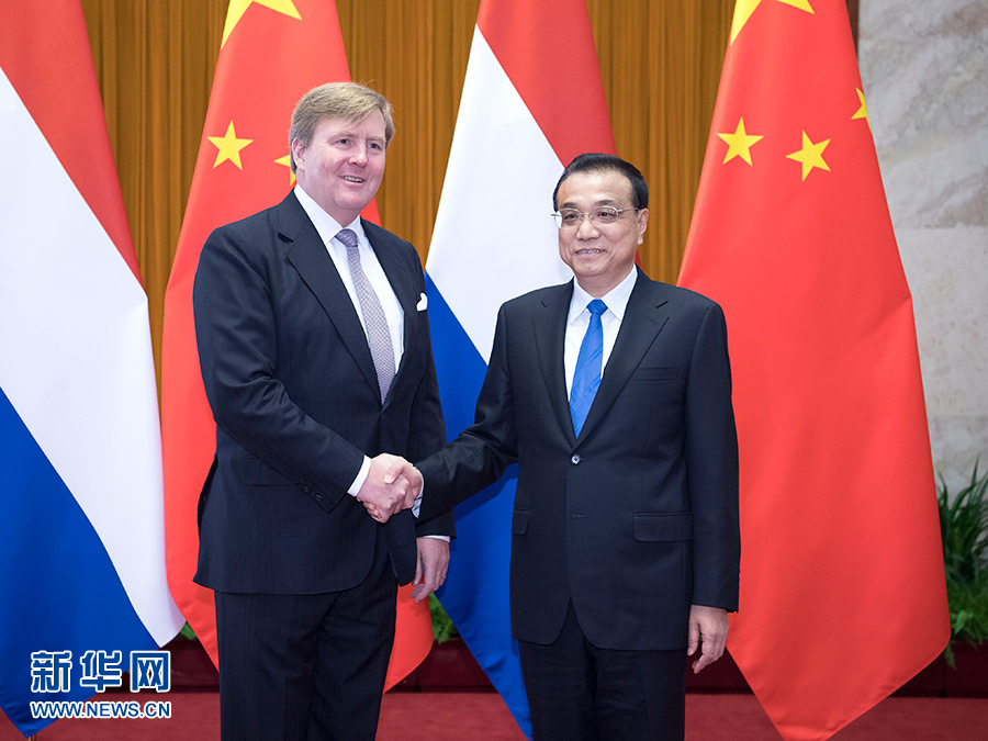 2月7日,國務院總理李克強在北京人民大會堂會見荷蘭國王威廉-亞歷山大。 新華社記者 李濤 攝