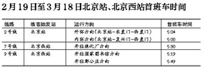 2號(hào)線(xiàn)、7號(hào)線(xiàn)、9號(hào)線(xiàn)2月19日至3月18日首班車(chē)時(shí)段加開(kāi);緩解北京站、北京西站返程客流壓力