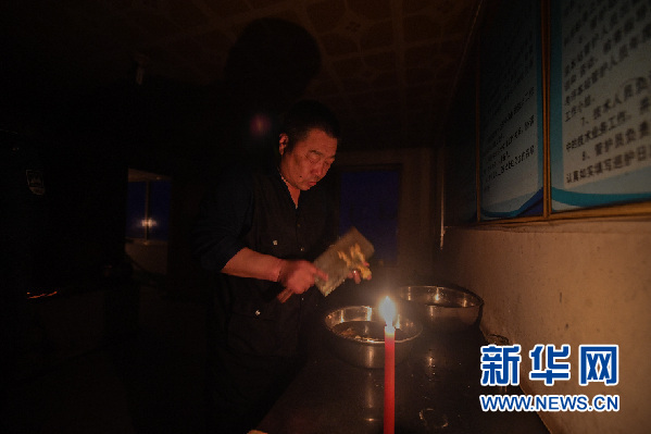 燭光搖曳,白玉華一一清洗凍白菜、土豆和鮮肉,這是他年夜飯的所有食材。這幾天喝水成了問題,用的水是他從20公里之外的河溝中鑿取的冰塊。兩天前,站上的柴油發(fā)電機(jī)壞了,不能抽取井水。大雪封山,車行困難,機(jī)器無法維修。“這機(jī)器也知道過年給自己‘放假’?!卑子袢A苦笑地?fù)u搖頭。