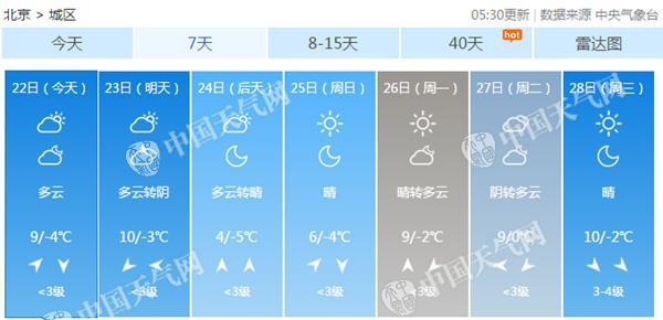 今天是春節(jié)假期后的第一個工作日,晴暖的天氣和湛藍(lán)的天空或許能給公眾帶來一份好心情。北京市氣象臺預(yù)計,今天白天晴轉(zhuǎn)多云,北轉(zhuǎn)南風(fēng)三級左右,最高氣溫9℃;夜間多云轉(zhuǎn)晴,南轉(zhuǎn)北風(fēng)二三級,最低氣溫零下4℃。