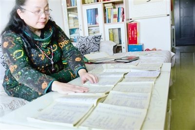 曹瑛在翻看媽媽留下的15本生活賬本。鄭報(bào)融媒記者 謝源茹 圖
