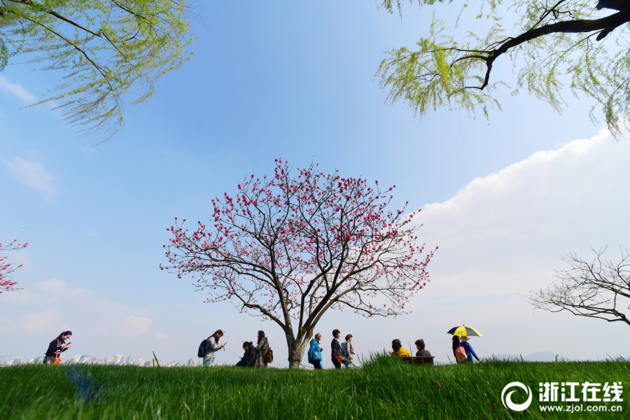 3月26日,雨后西湖再度晴歸。西湖白堤,正是桃紅柳綠時(shí)。(浙江在線拍友 里爾 攝)