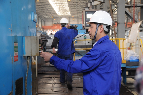 國機(jī)重裝二重裝備鑄鍛公司加工一廠的車間內(nèi),機(jī)器轟隆,大型數(shù)控臥車床排排而立。在這里,龍小平帶領(lǐng)團(tuán)隊(duì)完成了多件百萬級核電、水電、火電等大型軸類件產(chǎn)品的精深加工。