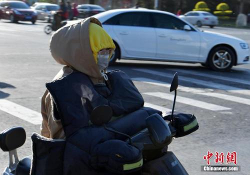 4月6日,石家莊市民穿上厚厚的冬衣出行。 中新社記者 翟羽佳 攝