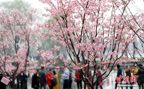 3月27日,游客在北京玉淵潭公園賞櫻花。中新社記者 杜洋 攝