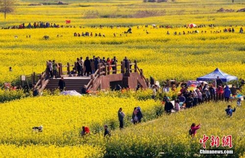 4月7日清明小長(zhǎng)假最后一天,江蘇興化千垛景區(qū)賞花觀(guān)景的人流如潮。 湯德宏 攝