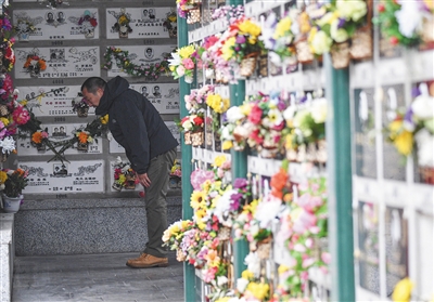 4月5日,市民前往萬(wàn)安公墓祭奠。將骨灰盒放入墻內(nèi)骨灰格的立體安葬方式,成為眾多家庭的選擇。新京報(bào)記者 陶冉 攝