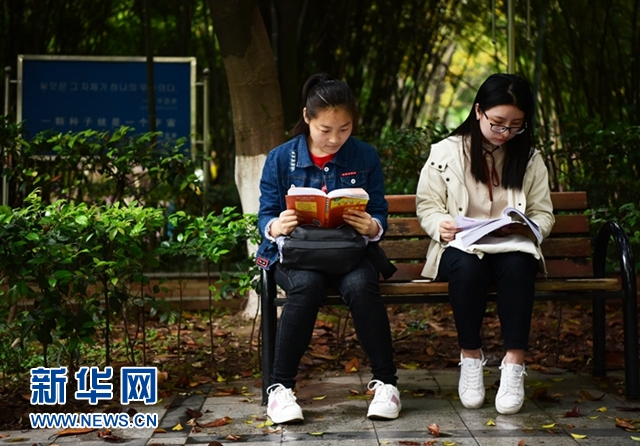重慶市四川外國(guó)語(yǔ)大學(xué)的學(xué)生在校園內(nèi)晨讀(4月20日攝)。新華社記者 王全超 攝