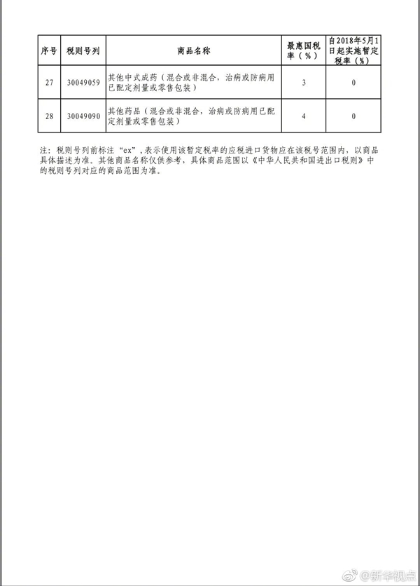 新華網(wǎng)北京4月23日電 財政部關稅司23日發(fā)布消息,5月1日起我國將取消包括抗癌藥在內(nèi)的28項藥品進口關稅。調(diào)整后,除安宮牛黃丸等我國特產(chǎn)藥品、部分生物堿類藥品等少數(shù)品種外,絕大多數(shù)進口藥品,特別是有實際進口的抗癌藥均將實現(xiàn)零關稅。(記者郁瓊源) ????(據(jù)新華社“新華視點”微博報道)?