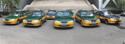 4月23日,北京市刑偵總隊(duì)大院內(nèi),停放有10多輛出租車,從外觀來(lái)看與普通出租車無(wú)異。