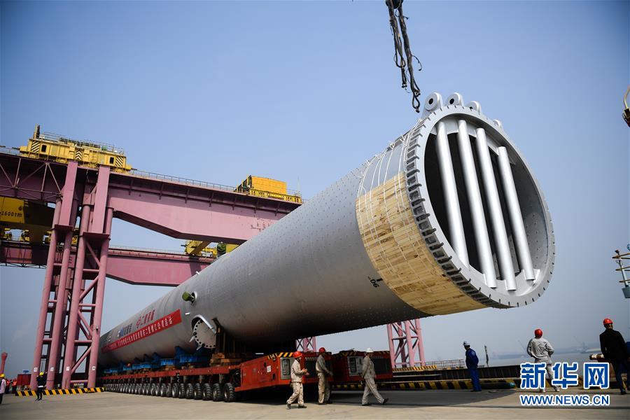 4月28日,江蘇鎮(zhèn)江,工人在給260萬噸/年沸騰床渣油鍛焊加氫反應(yīng)器做發(fā)運(yùn)前的準(zhǔn)備工作。新華社記者李響 攝