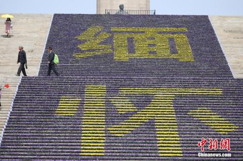 資料圖:3月26日,南京雨花臺(tái)烈士陵園內(nèi)的烈士紀(jì)念碑前布置了由數(shù)萬盆鮮花組成的“緬懷”花壇,以此表達(dá)對(duì)革命英烈的紀(jì)念之情。 中新社記者 泱波 攝