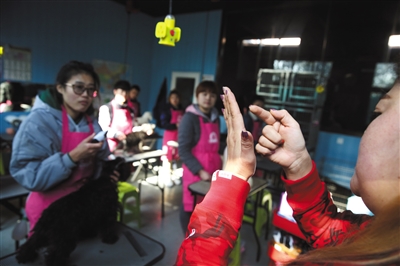 今年1月29日,青島,十幾名聾啞人正接受培訓(xùn),希望能靠一技之長找到合適工作。圖/視覺中國