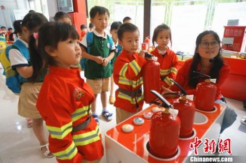 資料圖:兒童節(jié)孩子們穿上迷你消防服,體驗(yàn)?zāi)M滅火?!№n章云 攝