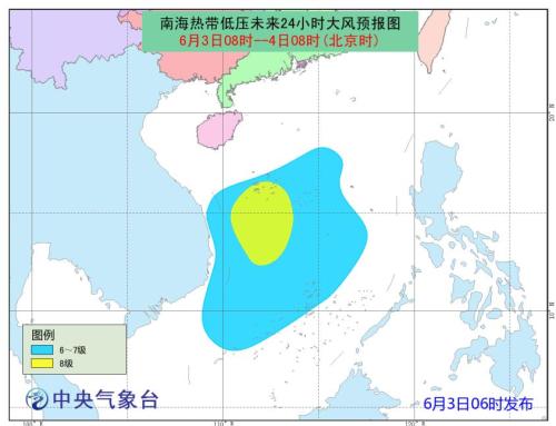 南海熱帶低壓未來(lái)24小時(shí)大風(fēng)預(yù)報(bào)圖