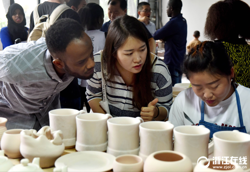 2018年6月3日,來自30多個國家的70多名留學生,在武義漢坊婺窯認真學習修坯、上釉等環(huán)節(jié)。