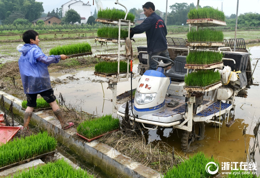 武義縣王宅鎮(zhèn)陶宅村種糧大戶(hù)方曉輝忙著插種單季稻。
