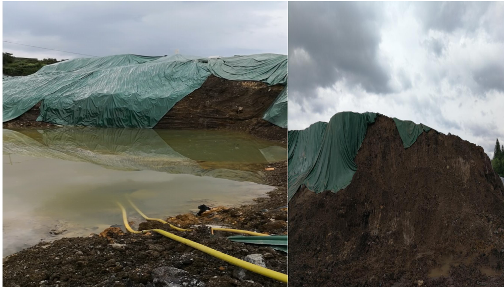 圖1 含鉛廢渣堆場集水嚴(yán)重、防滲膜破裂