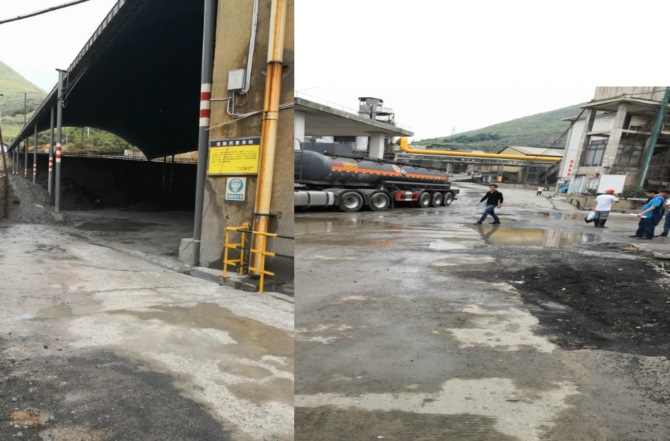 廠區(qū)沒有建設(shè)初期雨水收集系統(tǒng)?,F(xiàn)場檢查時正值雨后,地面散落的含重金屬廢渣、粉塵經(jīng)雨水沖刷進(jìn)入雨水溝,最終匯入廠區(qū)低洼處。但由于收集池容積小,大量雨水混著含有重金屬的污水溢流至廠區(qū)道路,廠區(qū)污水橫流。