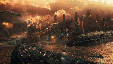 這是電影中外星母艦襲擊地球的場景。