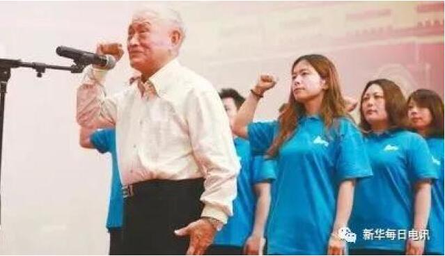 6月6日這天下午,在上千名中共黨員的見證下,耄耋之年入黨的“新兵”牛犇舉起右手、握緊拳頭,鄭重地向黨旗宣誓。