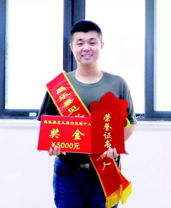 近兩個(gè)月前,昌樂小伙劉洋明不顧個(gè)人安危徒手將一名墜樓的男童接住,劉洋明見義勇為的事跡得到廣泛贊譽(yù)和關(guān)注。7月4日下午,劉洋明被昌樂縣授予“見義勇為先進(jìn)個(gè)人”榮譽(yù)稱號(hào),并獎(jiǎng)勵(lì)5000元獎(jiǎng)金,然而,他轉(zhuǎn)身就將獎(jiǎng)金捐出。