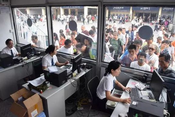 第二天凌晨,排隊的旅客少了,隊員們接著連軸轉(zhuǎn),關了自己的窗口,坐到其他售票員的窗口。