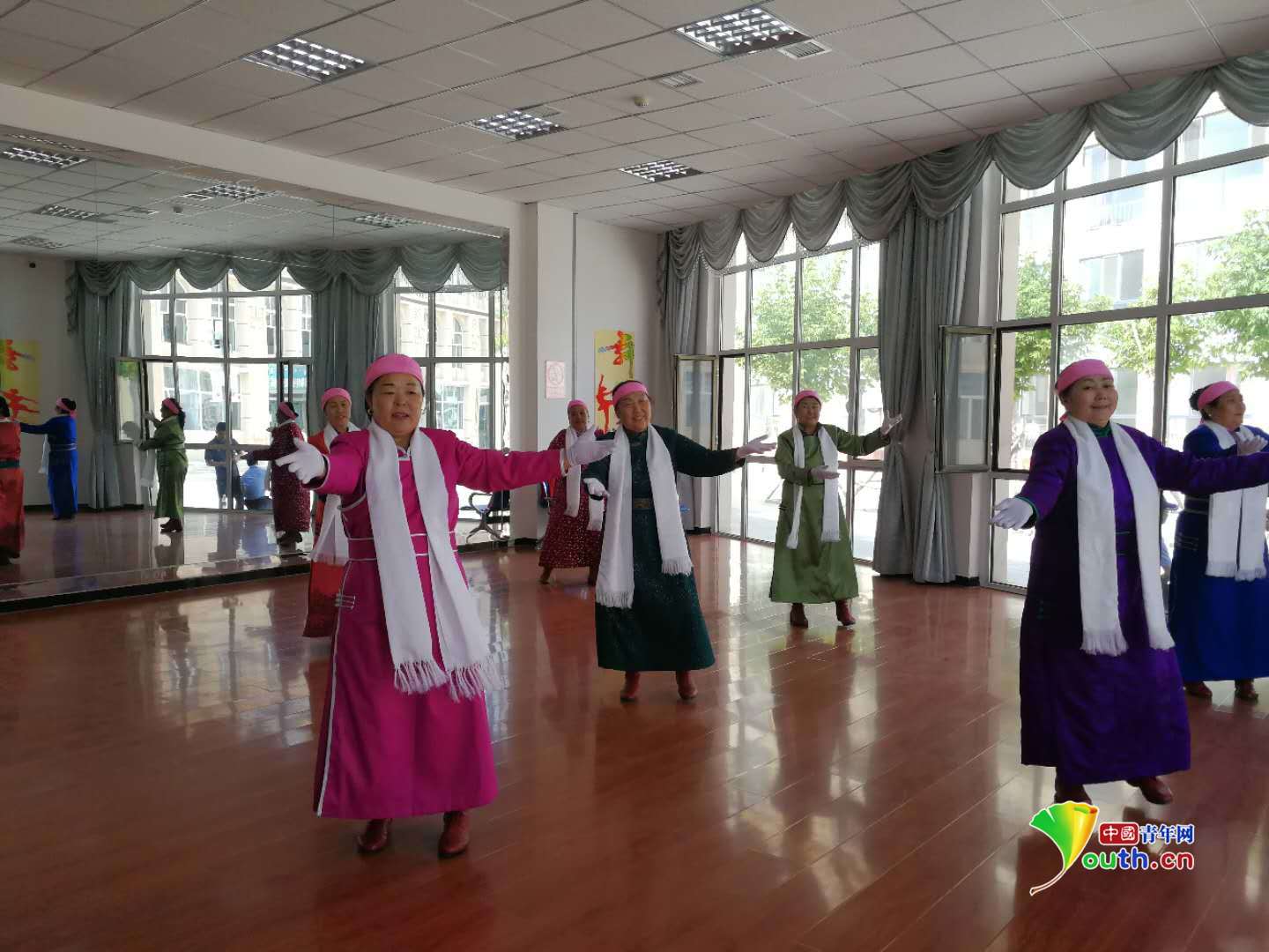 愛祺樂牧民養(yǎng)老園區(qū)內(nèi)的老人們?cè)谶M(jìn)行歌舞表演。中國青年網(wǎng)記者王曉蕓 攝
