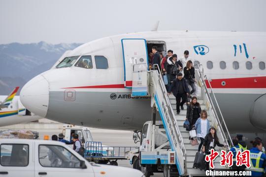 圖為旅客抵達(dá)拉薩貢嘎國際機(jī)場(chǎng)。何蓬磊 攝