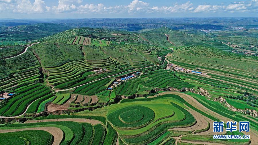 寧夏固原市彭陽縣金雞坪梯田公園(7月16日攝)。 新華社記者 王鵬 攝