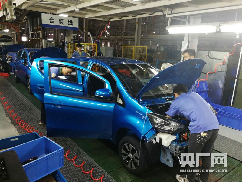 總裝廠內(nèi),工人正在組裝新能源車。合裝線主要負(fù)責(zé)機(jī)艙三電系統(tǒng)的安裝,是整車下線檢驗(yàn)前的最后一道工序組,裝好的新能源汽車可以開往試車跑道進(jìn)行試行,檢驗(yàn)新車是否符合下線售賣標(biāo)準(zhǔn)。(記者 李澎攝)