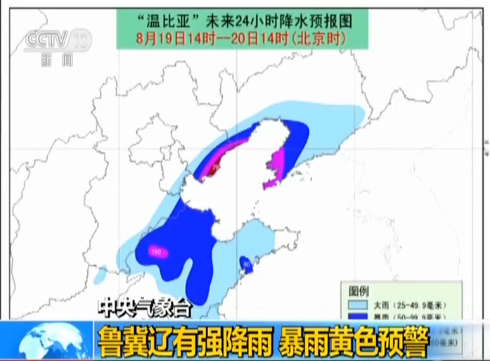 “溫比亞”雖已減弱,風(fēng)雨影響?yīng)q存。中央氣象臺(tái)上午10點(diǎn)發(fā)布暴雨黃色預(yù)警,預(yù)計(jì)隨著它繼續(xù)北上,今明兩天強(qiáng)降雨也將轉(zhuǎn)移至環(huán)渤海地區(qū),河北東部和南部、天津東南部、山東、遼寧南部等地有大到暴雨,其中山東中北部、河北東北部、遼寧南部等地局部地區(qū)有大暴雨或特大暴雨,上述部分地區(qū)還將出現(xiàn)短時(shí)強(qiáng)降水、雷暴大風(fēng)等強(qiáng)對(duì)流天氣。氣象專家提醒,由于受臺(tái)風(fēng)“摩羯”影響,本周環(huán)渤海一帶已經(jīng)遭遇過強(qiáng)降雨,今明兩天“溫比亞”又?jǐn)y暴雨來襲,需防范強(qiáng)降雨疊加可能引發(fā)次生災(zāi)害。