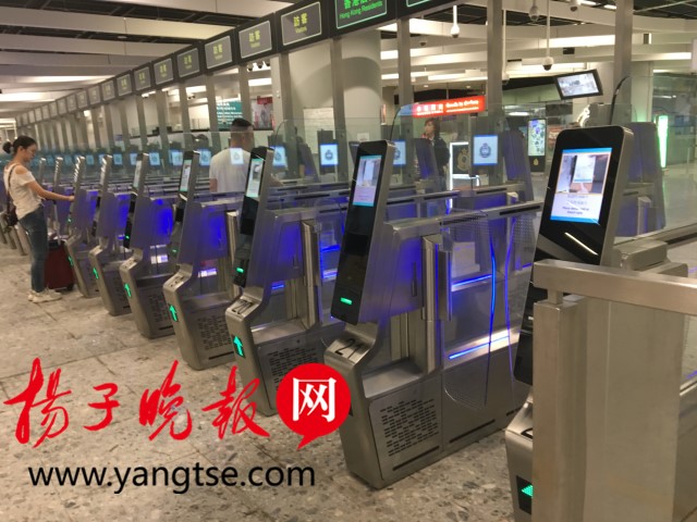 香港西九龍站實行“同層兩檢”??邕^這一條黃線就來到了香港口岸區(qū)。記者在進入香港入境待檢區(qū)域后,首先看到有三處設(shè)置體溫檢查的柜臺。再往里走,即是香港居民入境通道。一排閘機依次排開,港澳通行證放上即可通過。不過首次來港的旅客需要從人工柜臺入關(guān)。記者到達時,辦理香港入境程序的人較少,整個用時不到2分鐘,就完成辦理了入境程序。而在完成香港入境程序后,即可到檢票閘機處刷票出閘。從下車到入關(guān),記者一共花了約15分鐘。“現(xiàn)在正是小長假,如果沒有坐高鐵而是選擇從福田口岸過關(guān),1個小時都搞不定。”一位福田游客告訴記者。