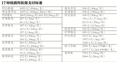 17種抗癌藥納入醫(yī)保目錄