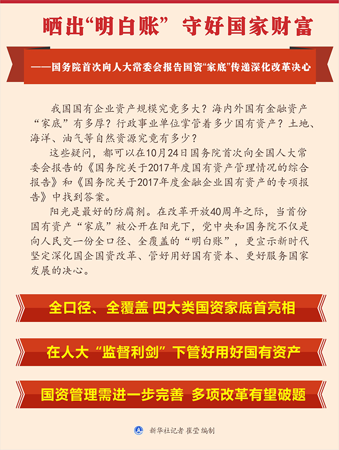 新華社北京10月24日電 題:曬出“明白賬” 守好國(guó)家財(cái)富——國(guó)務(wù)院首次向人大常委會(huì)報(bào)告國(guó)資“家底”傳遞深化改革決心