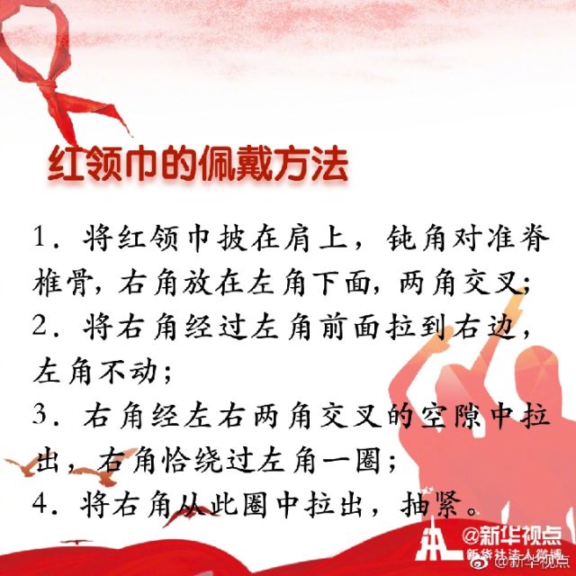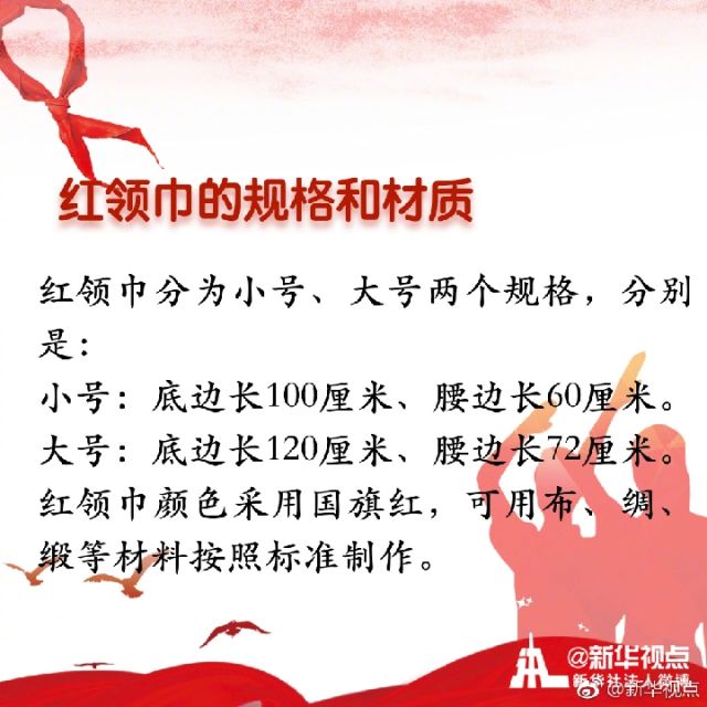 “我們是共產(chǎn)主義接班人,繼承革命先輩的光榮傳統(tǒng),愛祖國,愛人民,鮮艷的紅領(lǐng)巾飄揚在前胸。”紅領(lǐng)巾是紅旗的一角,是少年先鋒隊的象征與標(biāo)志。你是幾歲佩戴上的紅領(lǐng)巾?你對曾經(jīng)朝夕相伴的紅領(lǐng)巾了解多少?戳圖看詳解↓↓