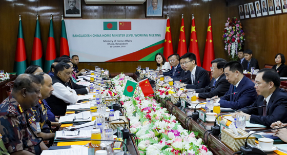國(guó)務(wù)委員、公安部部長(zhǎng)趙克志10月26日在達(dá)卡與孟加拉國(guó)內(nèi)政部部長(zhǎng)阿薩杜扎曼·汗舉行會(huì)談。